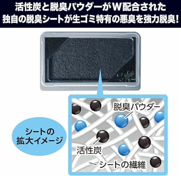 脱臭シートには、活性炭と脱臭パウダーが配合されています。