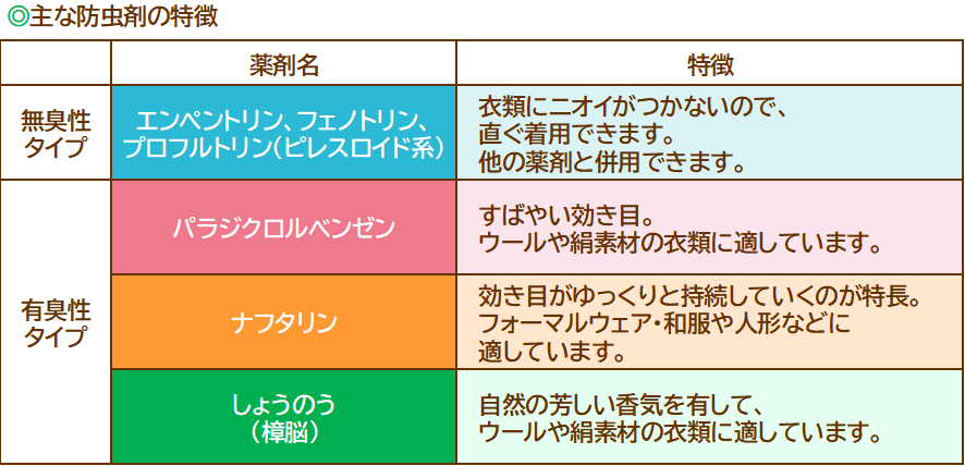◆衣類用防虫剤の種類について