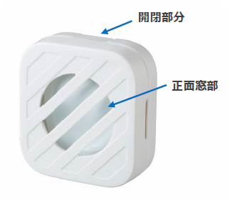 - 網目(正面窓部)を下に向け横倒しにして置いてしまうと、揮散した中身の成分が、置いた面を傷めたり変色させてしまう可能性がございます。置いて使用する場合は、容器の開閉部分を必ず上向きにし、立てた状態で置いていただきますようお願いいたします。